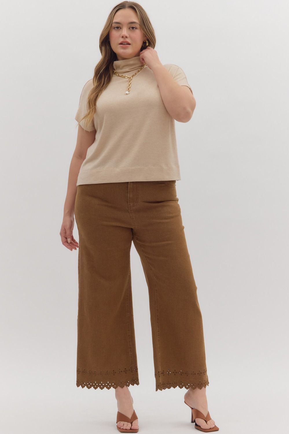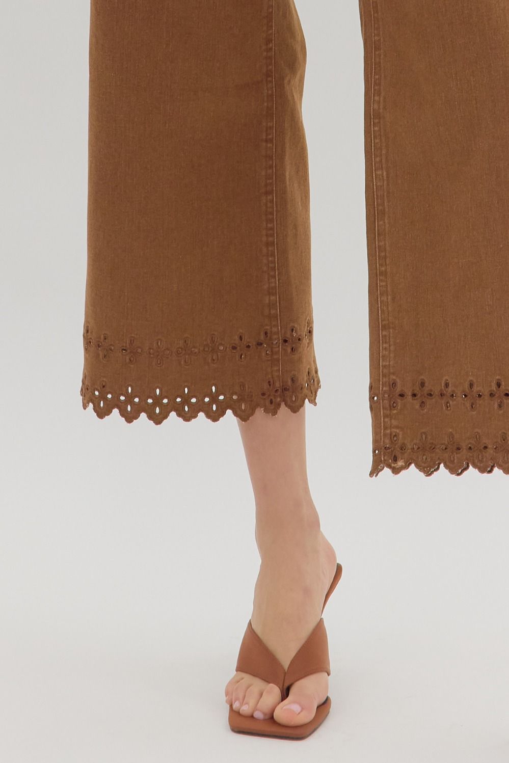 Simple. Strong. Set apart. The Abner Brown Pants are your go-to reminder that even in the most casual moments, you’re still called to walk with purpose. With a flattering high waist, wide-leg fit, and delicate scalloped eyelet hem, these pants effortlessly blend strength and softness — just like the Proverbs 31 woman.